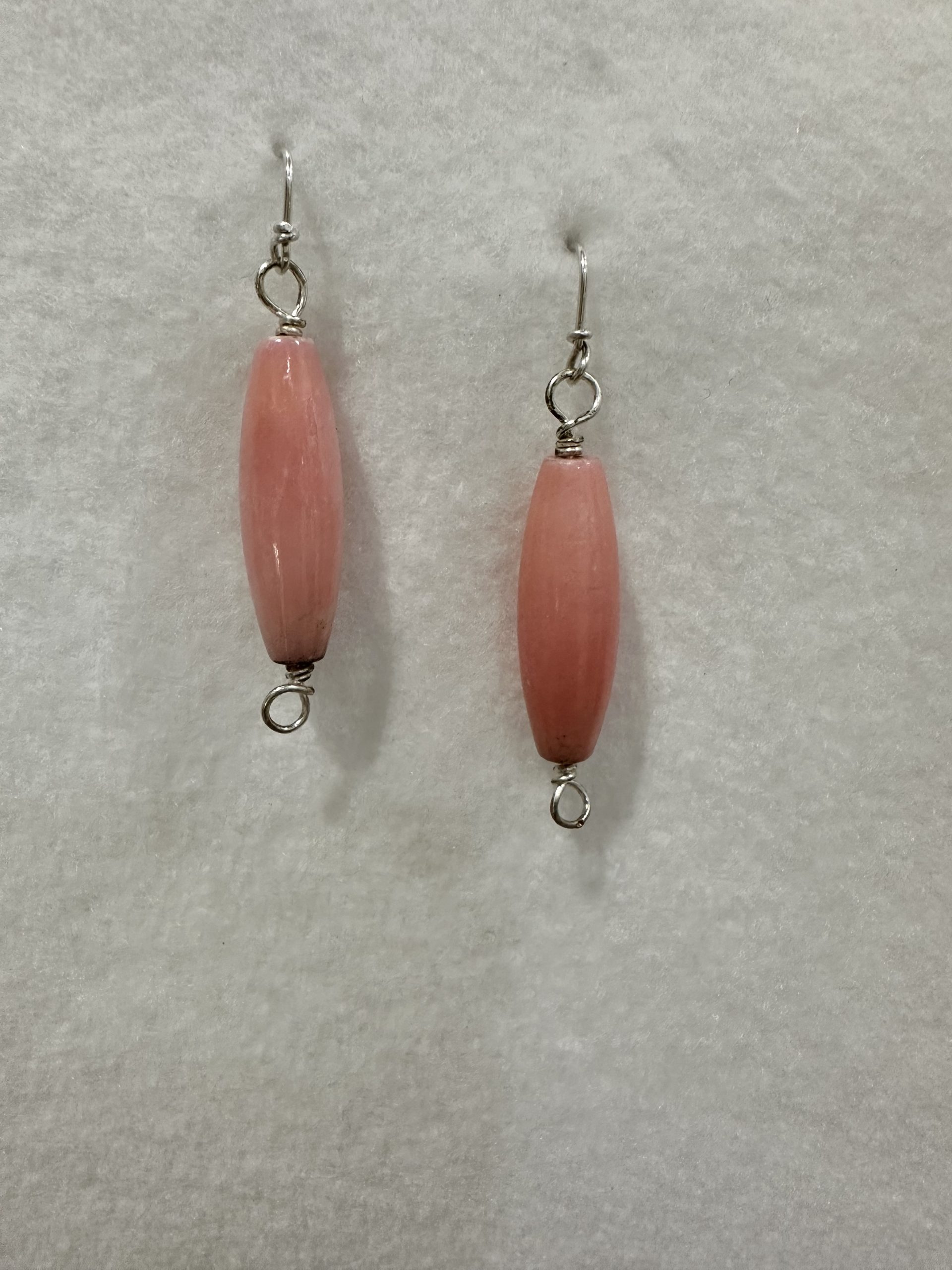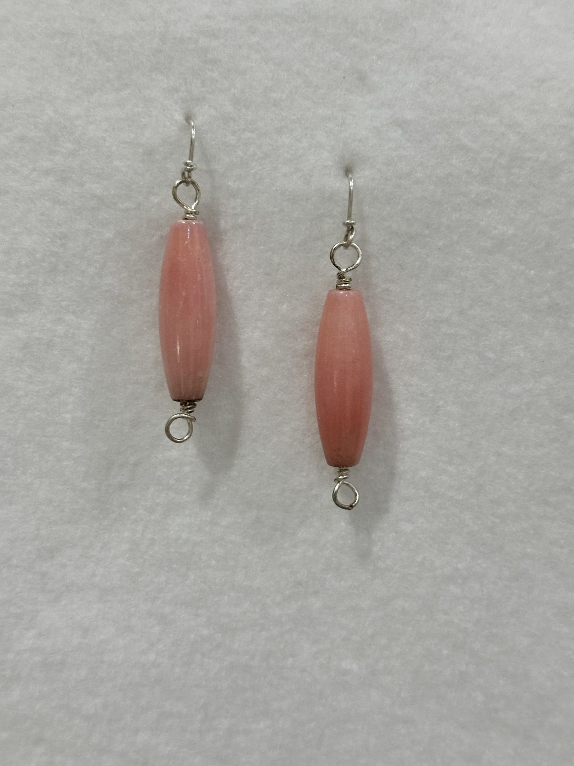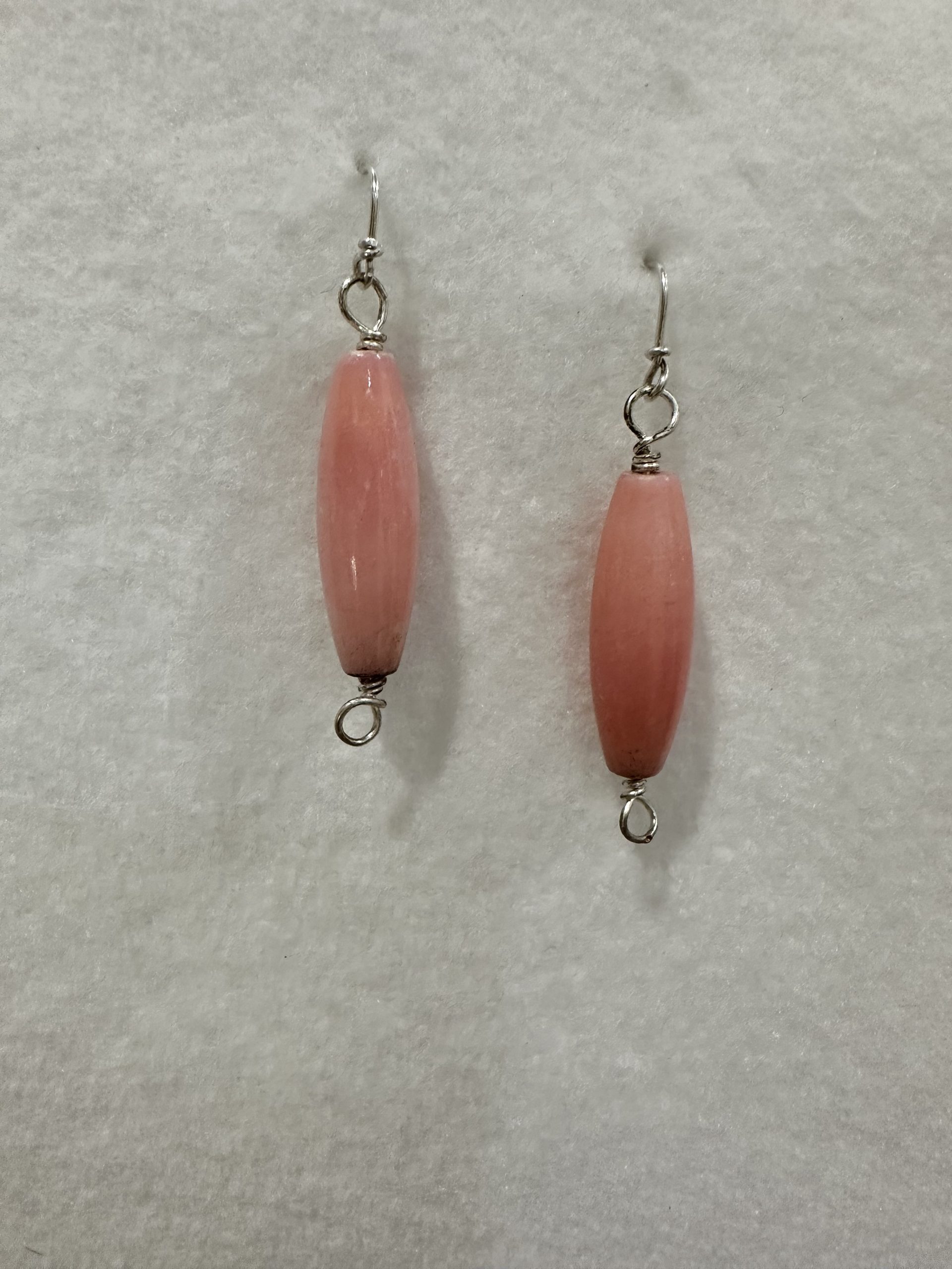Corral earrings wrapped in sterling silver wire.