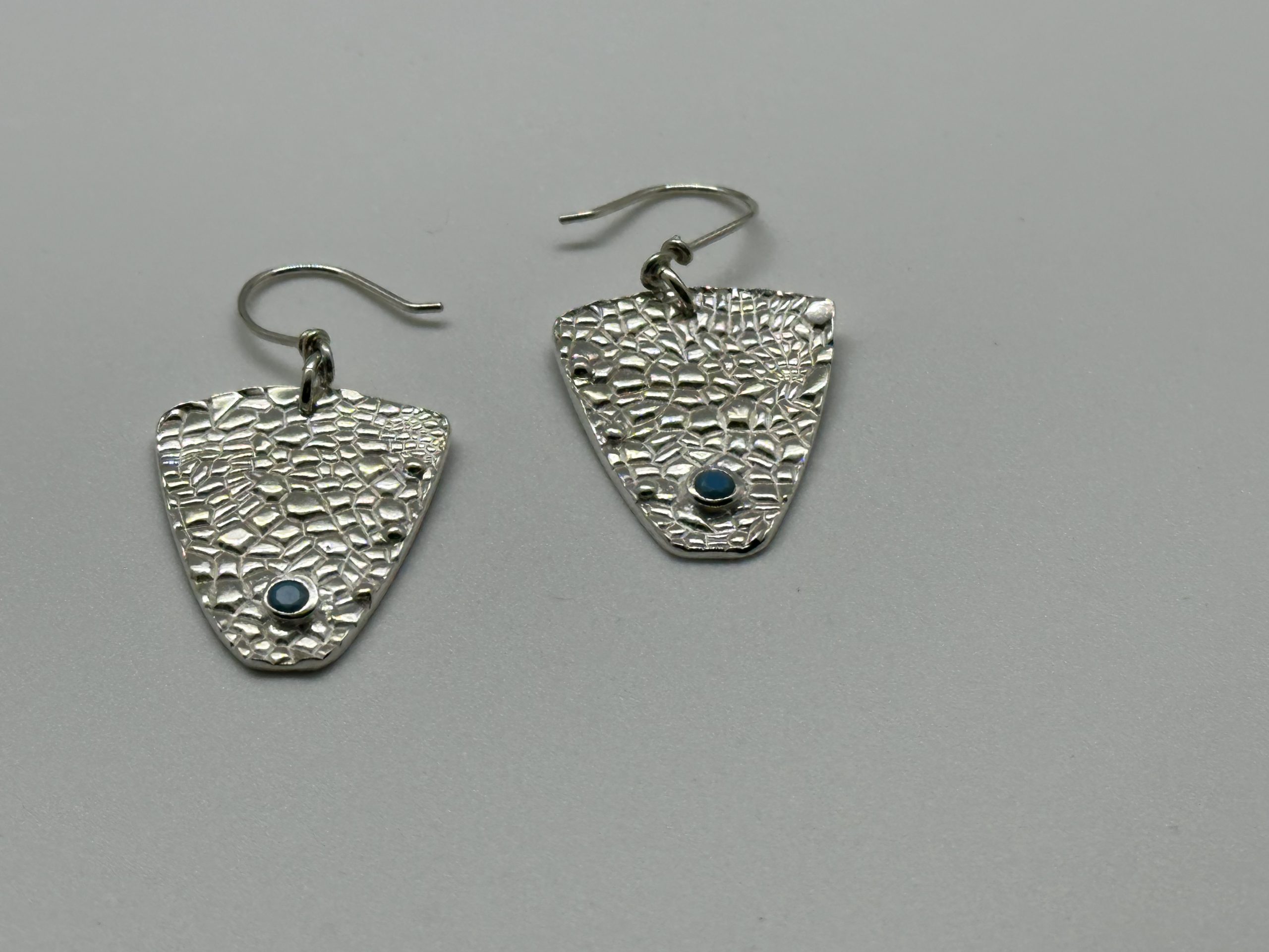 Fine Silver Earring with Turquoise Color Stone Insert.